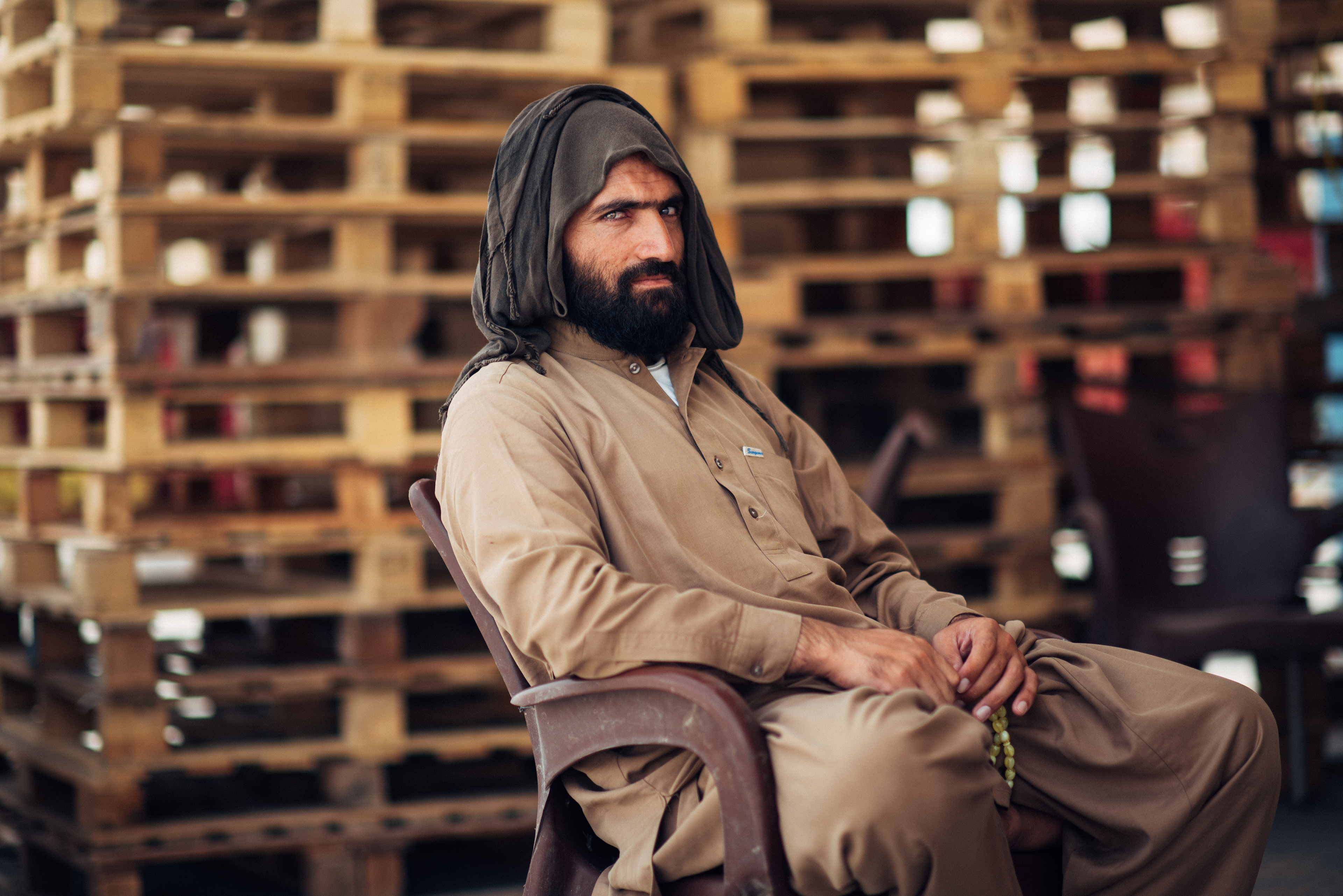 بورتريه لبشتوني بوسط سوق الخضار بمدينة الهفوف، السعودية