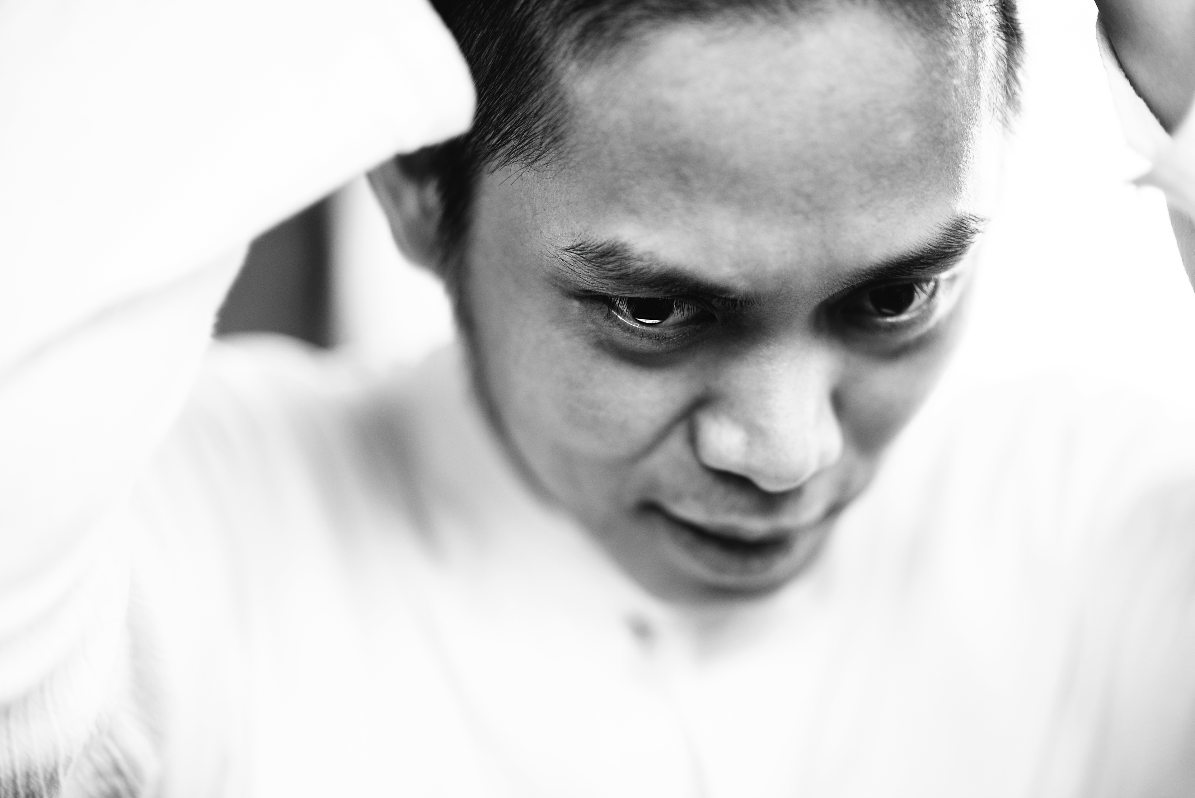 أحد الأصدقاء اللطيفين ممن عملت معهم لفترة من الزمن، أخبرته أنه يشبه الساموراي (اللقب الذي يطلق على المحاربين القدماء في اليابان) نظراً لطول شعره ولباسه الأبيض فقررنا أخذ بعض الصور بالأبيض والأسود تخليداً لذكرى الصداقة